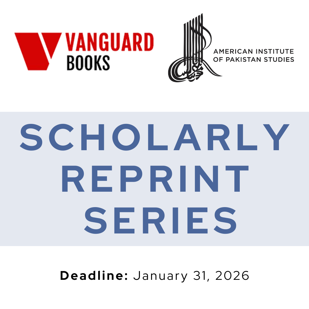 The American Institute of Pakistan Studies (AIPS) and Vanguard Books Pakistan are happy to announce a collaborative reprint series. The series focuses on reprinting humanities and social science monographs and edited volumes for sale in Pakistan. Prospective applicants must be individual AIPS members or scholars from an AIPS member institution. For accepted books, AIPS will … Read more